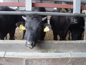 子牛(10ヶ月齢)を導入して、23ヶ月間厳選したエサと稲ワラを与え、ストレスなく育てる。 |